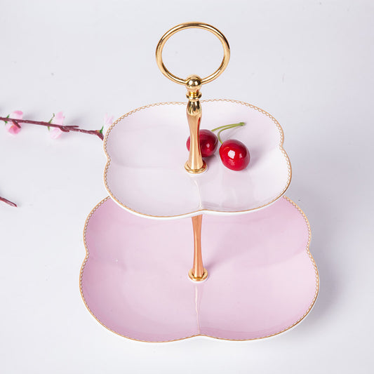 ‘Lucky Four-leaf Clover’ 2-Tier Ceramic Cake Stand (Pink)