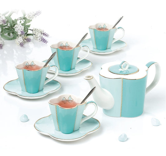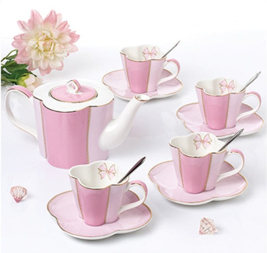 ‘Lucky Four-leaf Clover’ 10-Piece Ceramic Tea Set (Pink)